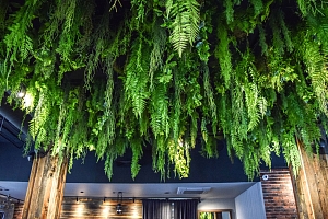 Искусственное потолочное озеленение площадью 20 кв. м. для ресторана после ремонта было выполнено в кратчайшие сроки.