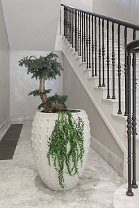 Специалисты LISTIME подобрали реалистичные ботанические копии ампельных растений и осуществили их монтаж на готовые мебель и светильники. Искусственные растения на данном объекте смотрятся очень натурально и придают интерьеру уникальность и стиль.