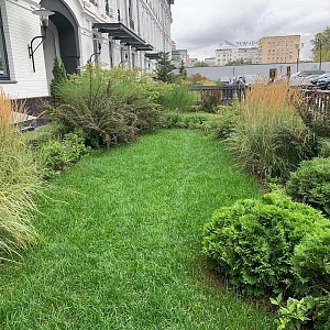 Все растения открытого грунта на объекте ЖК «ART RESIDENCE» уже несколько лет находятся на профессиональном обслуживании садовниками компании LISTIME.