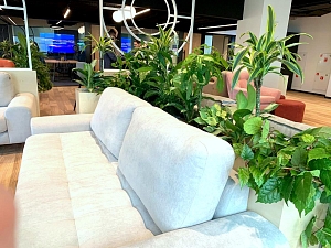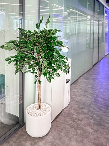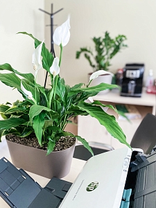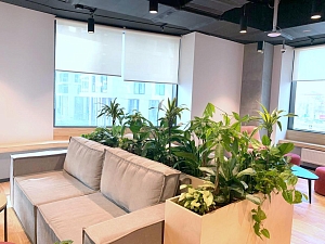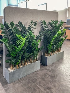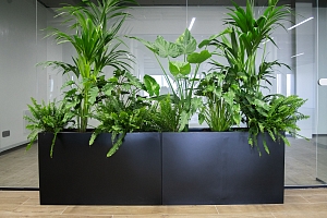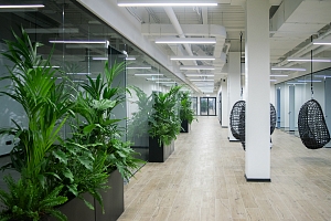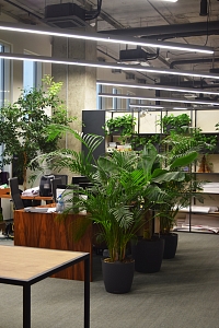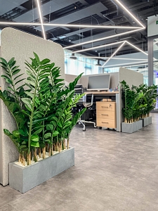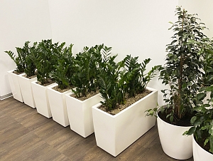 В офис Заказчика была произведена крупная поставка растений в классических белых кашпо с автополивом. Кашпо подчеркивают красоту растений и не отвлекают на себя лишнего внимания. Замиокулькасы в продолговатых кашпо играют роль живых перегородок и разграничивают пространство, разделяя его на зоны. Озеленение кардинально изменило внутренний вид офисного пространства, оживило его и сделало более уютным.