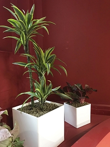 Заказчик выбрал для озеленения своего офиса композиции из готовых комплектов, представленных на нашем сайте. Среди выбранных композиций есть как напольные, так и настольные. Все они с неприхотливыми растениями, такими как: Фикус Бенджамина твист, Аглаонема Мария, Замиокулькас, Драцена Компакта, Спатифиллум Свит Лауретта, Диффенбахия Везувий, Ховея и др. В данном проекте использованы недорогие, но при этом стильные и универсальные пластиковые кашпо разных форм, расцветок и текстур, прекрасно сочетающиеся между собой.