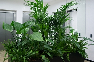 Все растения, расположенные в двух офисных зданиях, находятся на гарантии и сервисном обслуживании нашей компании.
