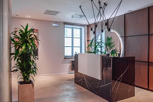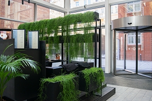 Компания LISTIME выполнила озеленение входной группы и ресепшен искусственными ампельными растениями в точном соответствии с дизайн-проектом Заказчика.