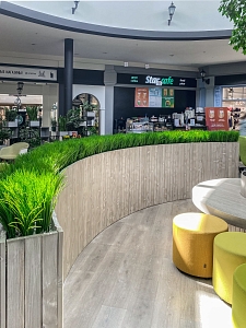 Любая известная сеть кофеен и ресторанов сталкивается с необходимостью озеленения. В данном случае всегда отдается предпочтение в первую очередь не красоте, а неприхотливости, поскольку благоприятных условий для роста и развития растений в таких помещения, как правило нет, а вандальная нагрузка на них чрезвычайно высока. Именно поэтому для сети кофеен Starbucks мы уже несколько лет предлагаем и сажаем замечательное растение Замиокулькас, которое максимально долго сохраняет декоративность в неблагоприятных условиях и стойко переносит воздействие людей. Но со временем даже эти стойкие растения приходится менять, и тогда наши специалисты приходят на помощь и в кратчайшие сроки решают проблему.