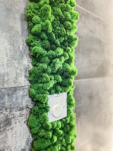 Реставрация чужой работы, в данном случае панно из мха — это одна из самых сложных и кропотливых задач. Необходимо было исправить чужие ошибки, подобрать цвета и виды мха, добавить стабилизированные растения, сделать раму и оригинальную подсветку - все эти моменты мы заранее согласовывали с заказчиком. Работа по монтажу была выполнена за 1 день.