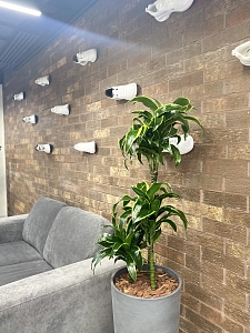 Нашему постоянному партнеру были предложены варианты композиций в их новый офис продаж. В соответствии с запросом, дизайном, а также условиями помещения, мы подобрали соответствующие кашпо с фактурой бетона и неприхотливые графичные растения. Грамотно расставленные зеленые акценты создают уют и добавляют комфорта посетителям офиса продаж. Растения на данном объекте находится на сервисном обслуживании нашей компании.