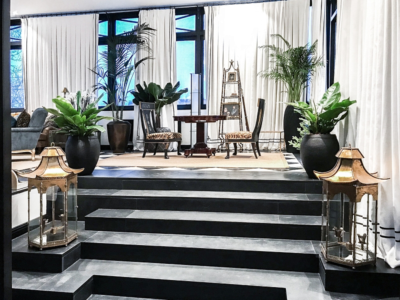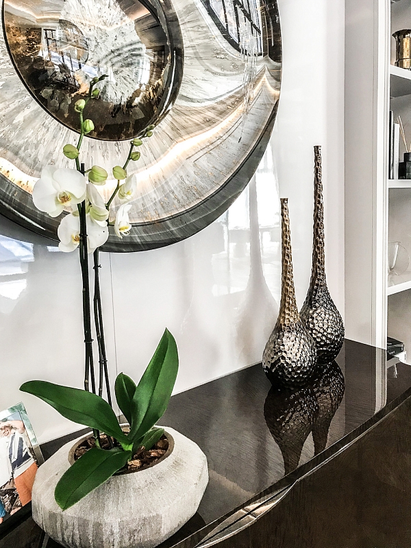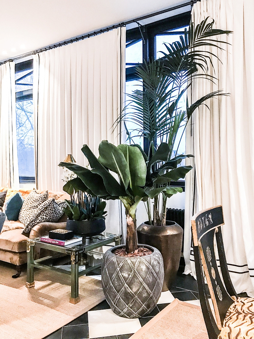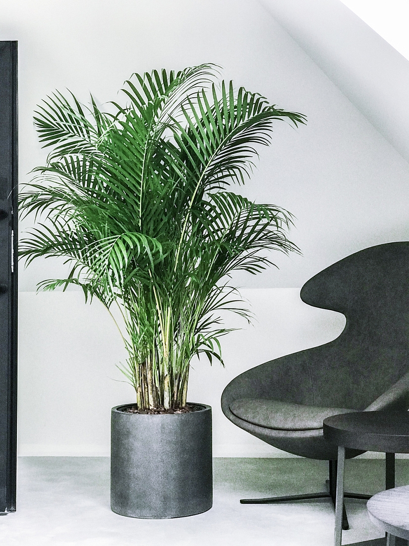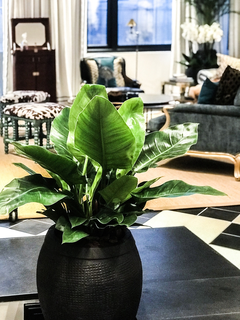 • Напольные и настольные композиции с фактурными живыми растениями в дизайнерских кашпо, соответствующих стилю интерьера;